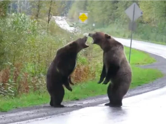This is something that only a few people are lucky enough to witness in their lives. A fight between two grizzly bears in the middle of a road in Canada. The footage is quite impressive.